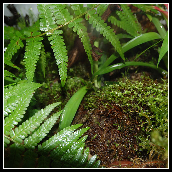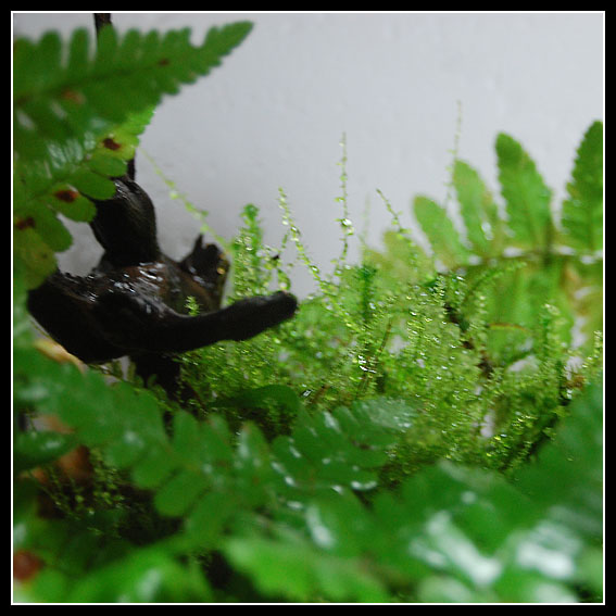 gestern hab ich mir noch ein keines Steinnäpfchen geholt dass sie ein kleines Plantschbecken haben, aber der Boden ist so nass das sie es garnicht wollen *grml* Bisschen sorge macht mir die Nässe, da ich ja noch keine Drainageschicht eingefügt habe!? Allerdings läufts jetzt schon recht lange konstant und Moos und Farne wachsen fast schon zu schnell! Hab den Farn gestern genau inspiziert, aus allen Pflänzchen schießen einige neue Blätter! :Glotz: Ich verwende aber auch nur das gute Regenwasser!