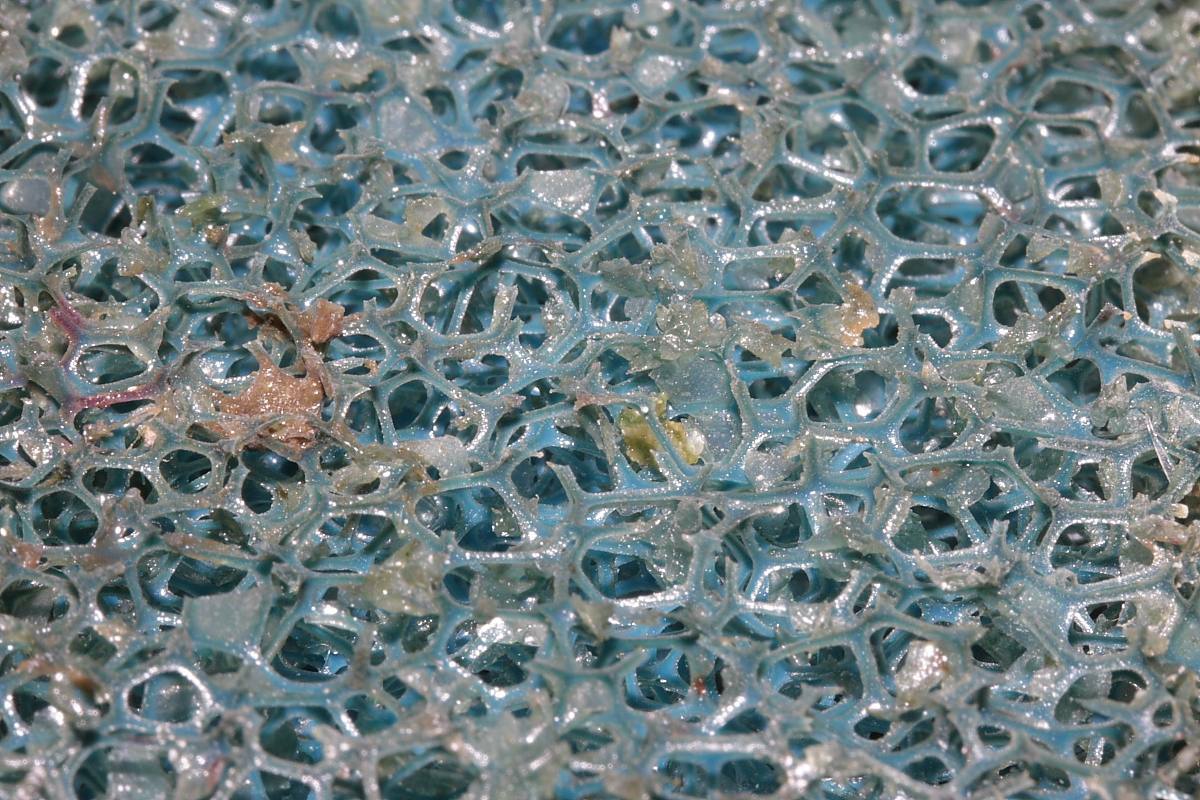 Zu Bild 1: Schon bald nach Einrichtung sammeln sich Substanzen auf der Mattenoberfläche und im Inneren. Die Matte ist dabei noch im ursprünglichen blau gehalten.
