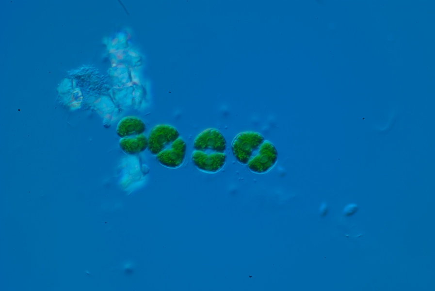 Die Zieralgen sind wahrscheinlich Cosmarium. Habe ich auch schon mal gesichtet, sind aber wahrscheinlich mehr oder weniger Zufallstreffer, da sie mehr oder weniger nur über Probenwasser mitkommen.