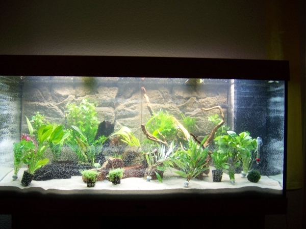 habe mich ja schon kurz vorgestellt und möchte euch jetzt kurz mein Becken vorstellen. Es sit nicht im Amanostil und ob es zu Naturaquarien gehört, bin ich mir nicht sicher. Ich hatte, von meinem Vater übernommen, seit ich 10 Jahr war, fast immer AQ. Als Jugendlicher habe ich so alles gezüchtet, was mir über den Weg lief und teilweise 6 AQ. Gesteigert habe ich mich dann bis zu 560l Diskusaquarien.