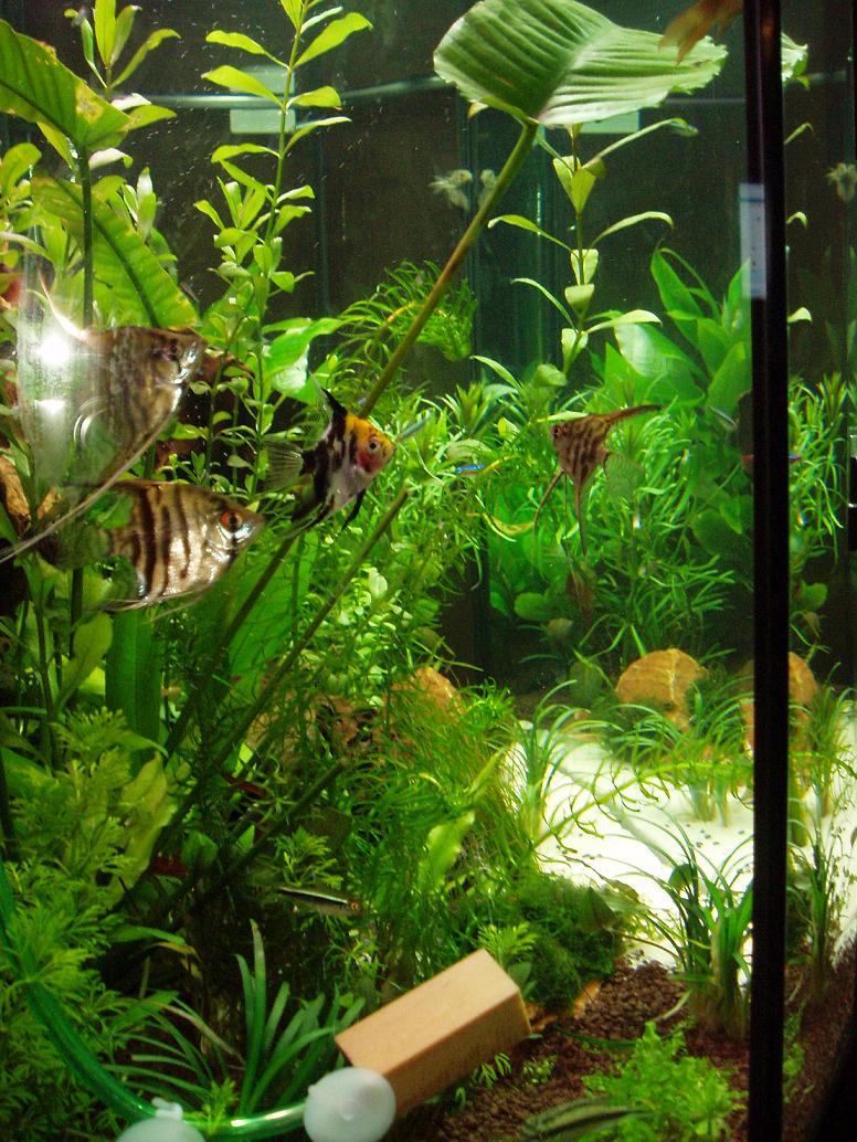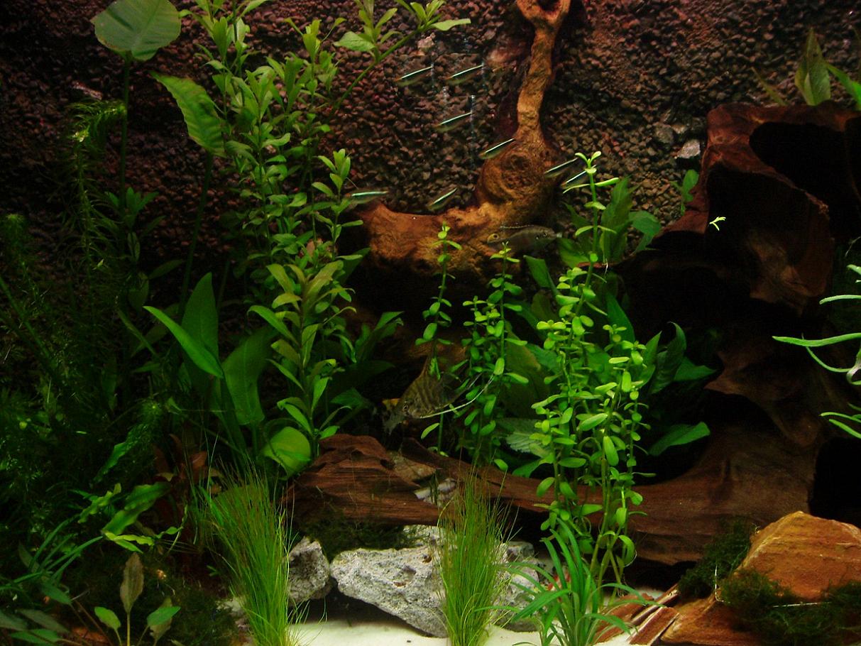 10 Schwarze Neon, 2 Makroboden, 3 Leopart-Skalare und ein Gelb-Schwarzer,5 Kleine Panzer-welse, 3 mini Ancistrus spec., 1 mal L-134 ,1 mal L-1, und ein Pärchen "Purpurprachtbarsche" ach ja und die Garnelen noch.