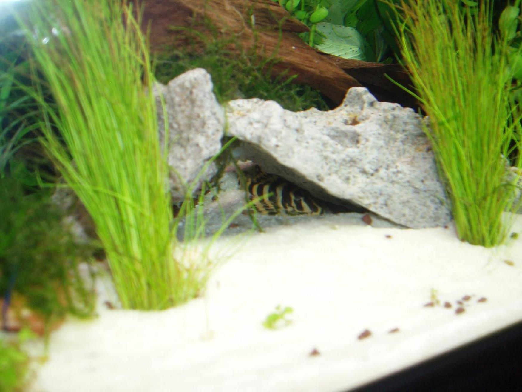 Hatte schon seid Montag den 29.12 zwei kleine Cardina japonica(Algenfressende Garnele) und ein Blaue Monstergarnele im Becken ,konnte es nicht erwarten was schwimmen zu sehen :grmpf: