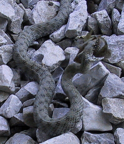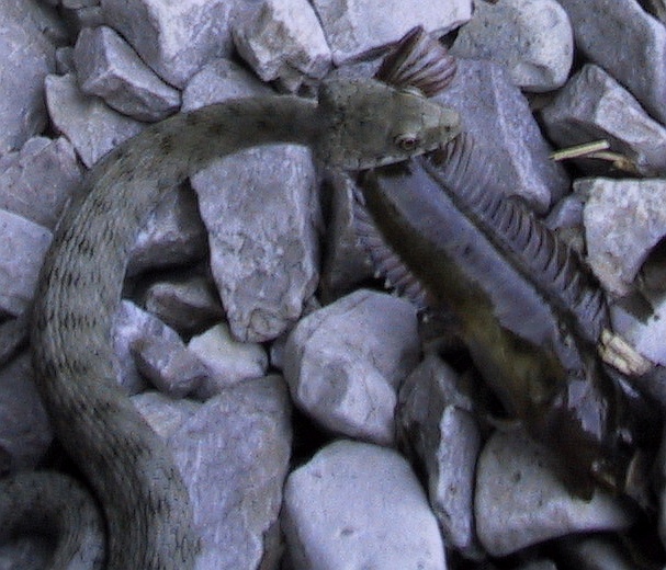 Bewusst wurde mir seine Existenz als Schleimfisch erst dadurch, dass wir eines Tages mal wieder ausgepowert vom Windsurfen am Ufer des Gardasees in der Sonne lagen und eine der dort üblichen (völlig harmlosen) Wasserschlangen mit einer Beute an Land kam.