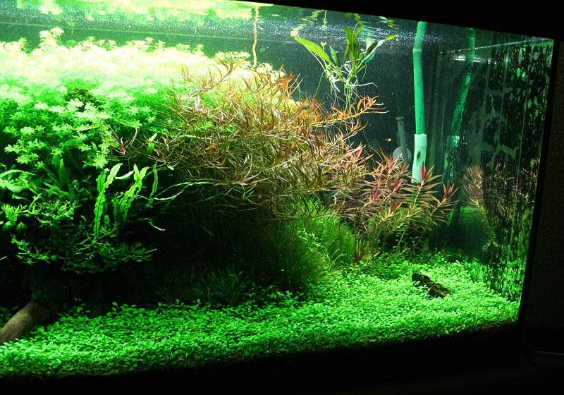 Ludwigia arcuata,Blxya japonica,Hemianthus callitrichoides,Eleocharis parvula und einer sehr roten Stängelpflanze mit recht kleinem Durchmesser bestehen!Die sehr rote Stängelpflanze mit recht kleinem Durchmesser suche ich noch,finde aber nicht das richtige,
