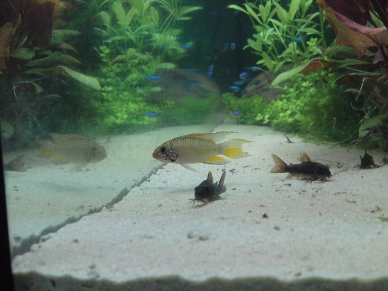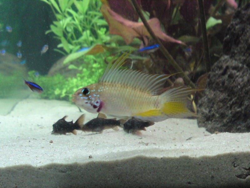 Mit dem Besatz sind wir vorerst bei Blauen Neons, ein paar Corydoras aeneus black und ein paar Apistogrammas sp. Breitbinden gelandet. Wir testen das erst einmal, ob die so klar kommen. Ich habe gestern in den Kleinanzeigen ein Schnäppchen gemacht und bekomme vier Becken(160l, 60l und zwei kleinere) voll ausgetattet für 60 Euro. Geht es nicht gut, kann ich umsetzen.