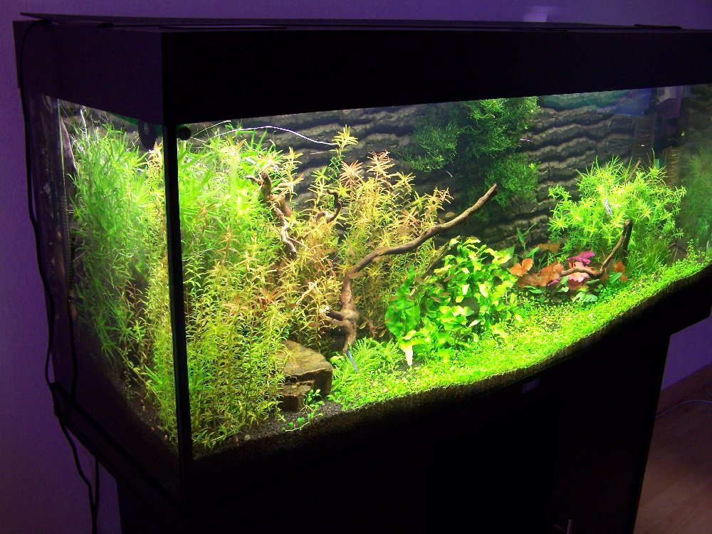 Gefiltert wird über einen Eh*im Prof. Außenfilter und zusätzlich habe ich noch einen kleinen Innenfilter eingebracht weil an der rechten Seite eine massiv tote Ecke war.