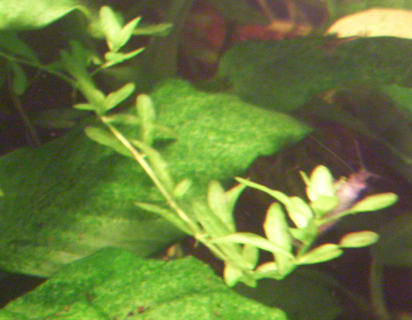 Sieht so aus, als hätte die Pfl. pro Knoten 2 (statt 3-4) Blätter? Könnte nämlich die rätselhafte Hemianthus-Form sein, die u.a. Hemianthus sp. "Göttingen" oder "Amano's Pearl Grass" genannt wird u. noch unkrautartiger wuchert als die handelsübliche H.-micranthemoides-Form. Woher hast Du Deinen Javafarn bezogen? Viell. hing ein kleines Stück von dem Hemianthus dazwischen.