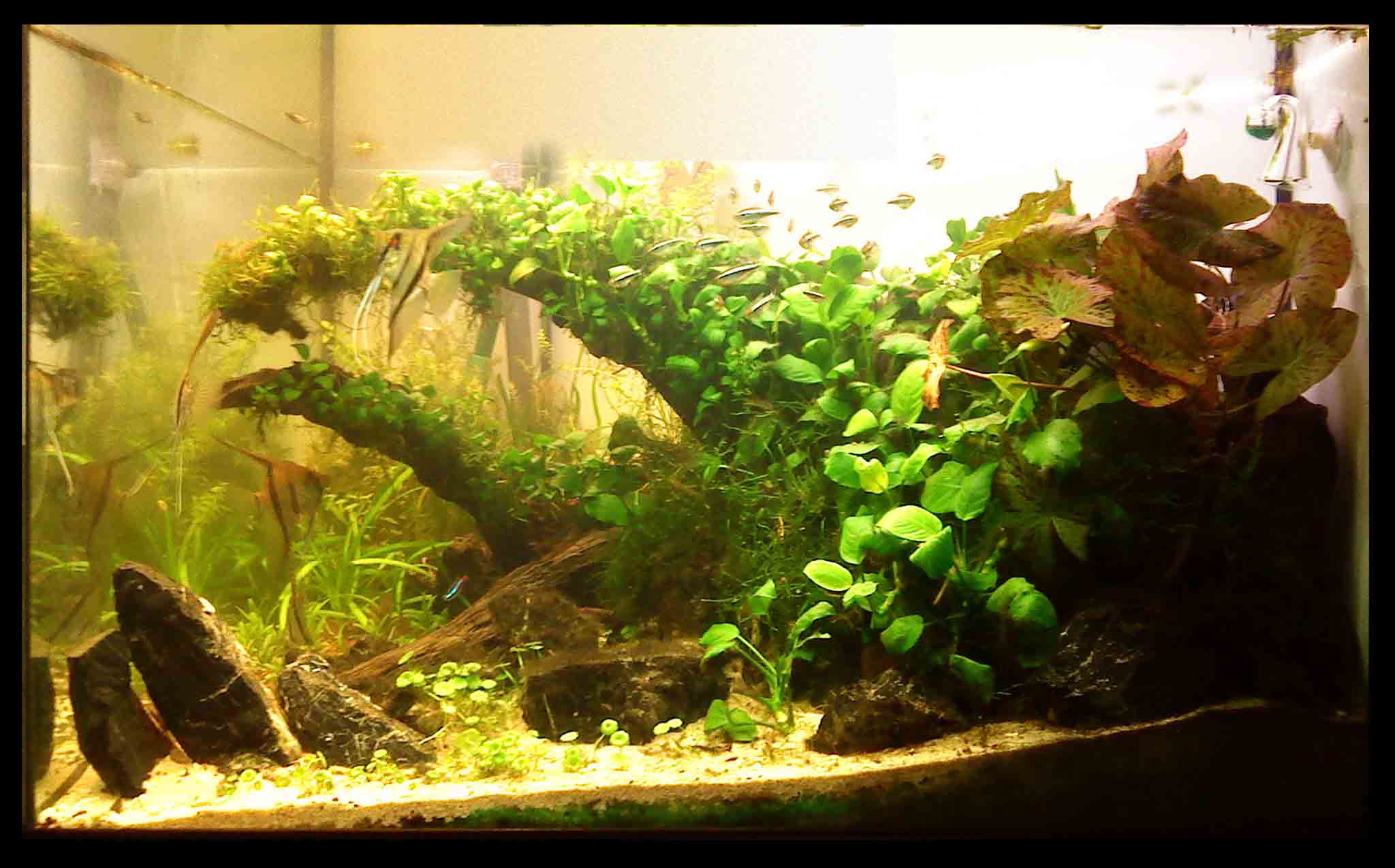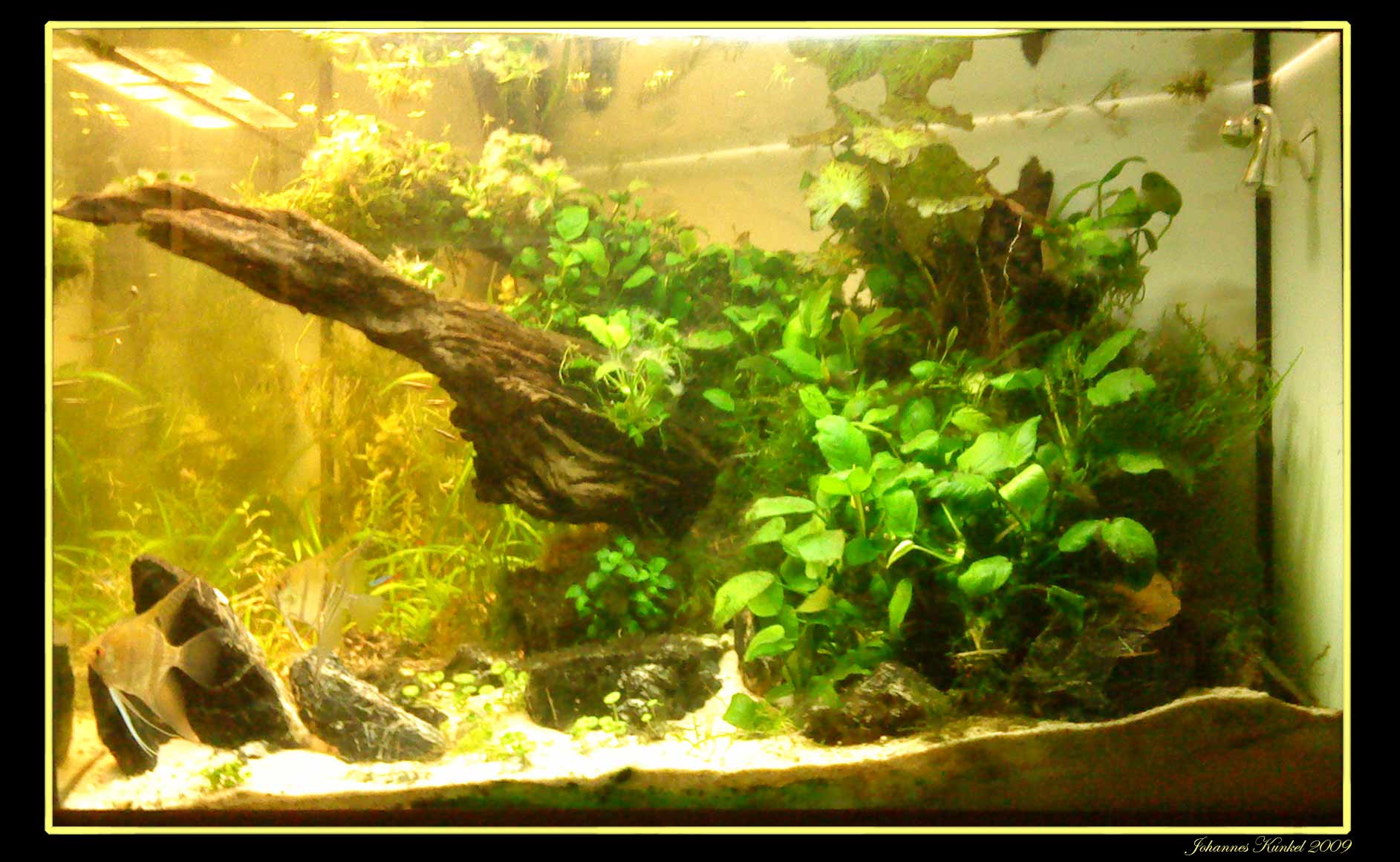 Im Hintergrund fehlt jetzt noch was saftig grünes ich denke mit der Graspflanze wirds schwer da die Wurzel sicher gut abschattet!? Ist ähnlich wie in meinem 54er Tümpel, die Wurzel raubt da Jegliches Licht obwohl man es optisch nicht so wahrnimmt!