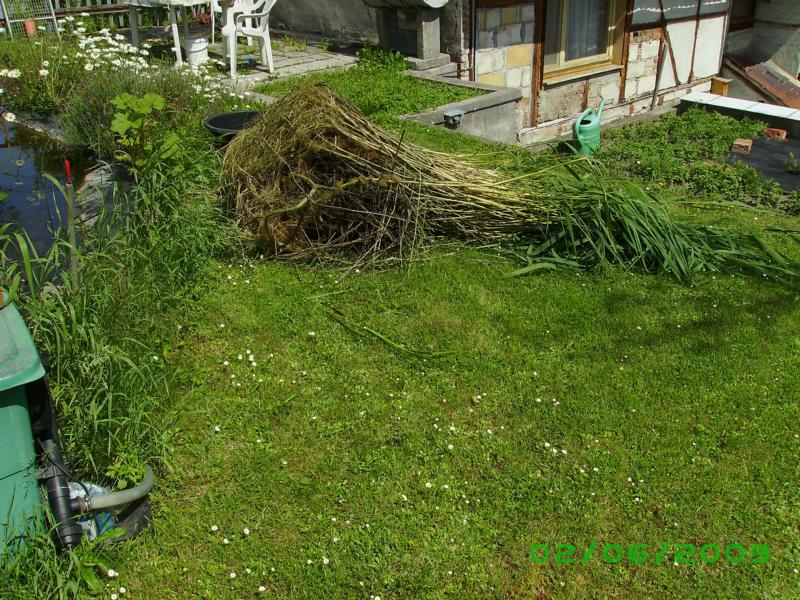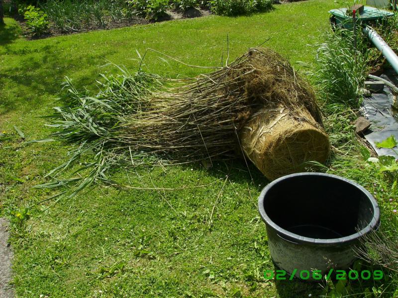Wie man sieht, mußte ich eine große Schilfwurzel raus holen. Die hatten keinen Stand mehr, beim kleinsten Luftzug kippte sie um.