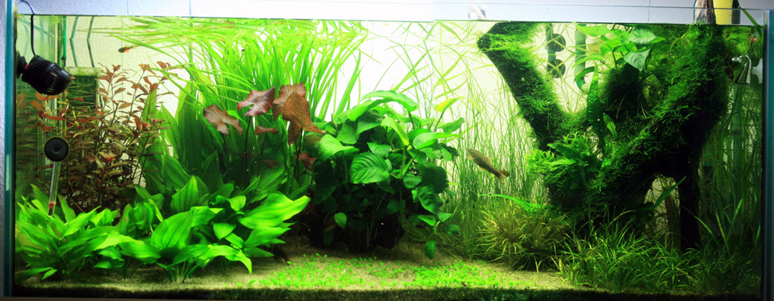 Dafür ist im linken Bereich schon etwas Cyperus helferi eingezogen. Zwischen der Anubias ( Speerblatt )-Wurzel und der rechten Ecke muß ich noch auslichten, wollte zwischen den beiden Wuzel im hinteren Bereich es mal mit der