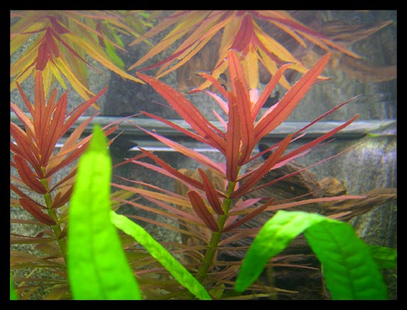 Dort steht sie im Bereich des Ausströmers (keine Ahnung ob das eine Rolle spielt...). Auf jeden Fall wächst sie seitdem wie verrückt. Die intensiv rote Färbung haben allerdings nur die oberen Blätter.