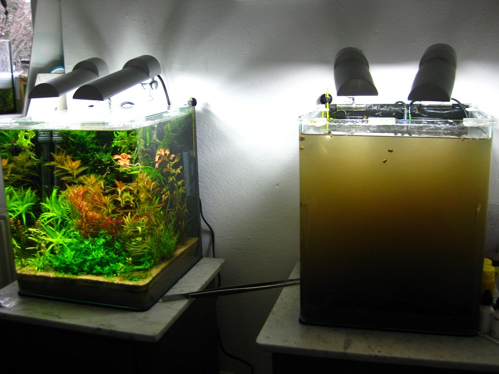 Einmal habe ich schwarzen Dennerle-Garnelenkies verwendet und beim anderen Becken roten Buntsandsteinsand aus nem Bach in meiner Heimat.