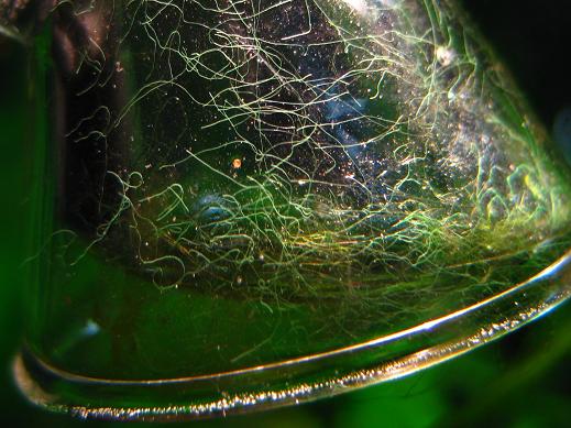 Bild 2: in der Bildmitte ist ein einzelner Algenfaden, das rechte Ende ( cirka 1/4 der Gesamtlänge wedelt im Wasser herum