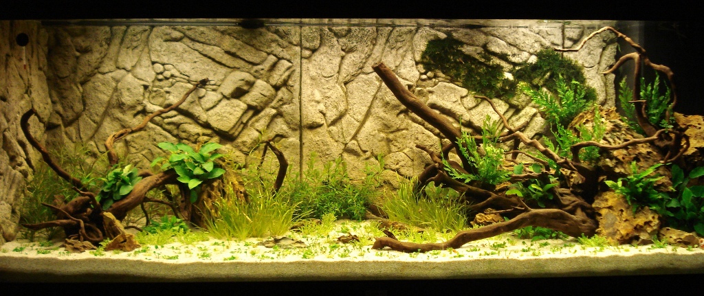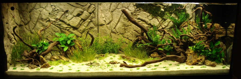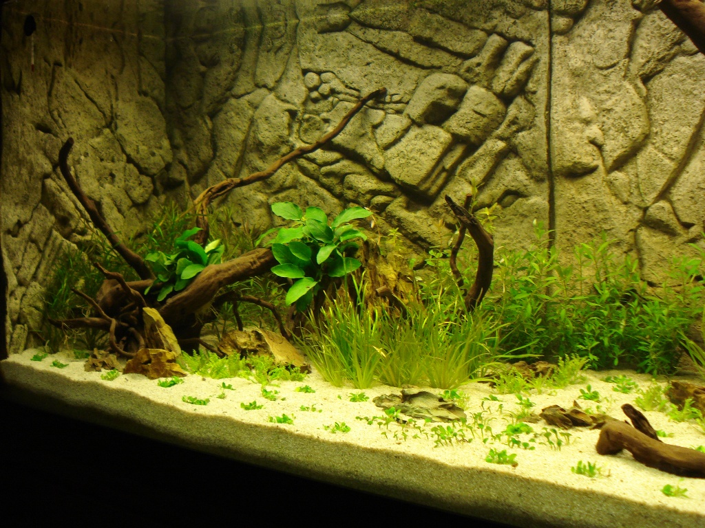 ja in Geduld muss ich mich wirklich üben :lol: Aber ich denke ich kann mich auch mal beherschen :wink2: Also das im Vordergrund ist momentan zum größten Teil Glosso. Dazwischen wird dann noch die Marsilea gesetzt und hier und da noch ne Eleocharis. Moos kommt natürlich auch noch. Wie gesagt, heute Abend ist Feinschliff angesagt :happy: Morgen kann ich euch dann hoffentlich die Bilder vom vorerst endgültigen Layout presentieren.