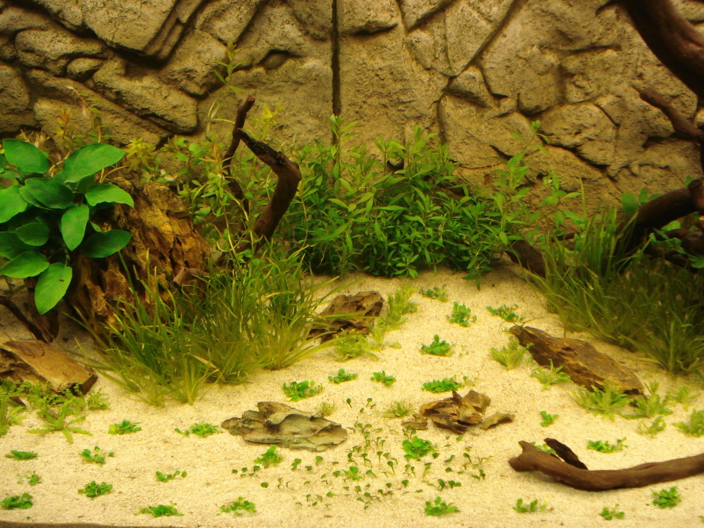 Also das mit den Bodendeckern ist beabsichtigt. Ich möchte einfach mal sehen, welcher sich durchsetzt. Ich hoffe die Glosso und weiterhin die Marsilea. Aber ich hoffe auch die beiden anderen, denn ich finde es eigentlich ganz reizvoll, wenn hier und da ein paar Sprießer der Eleocharis oder der Utricularia durchkommen.