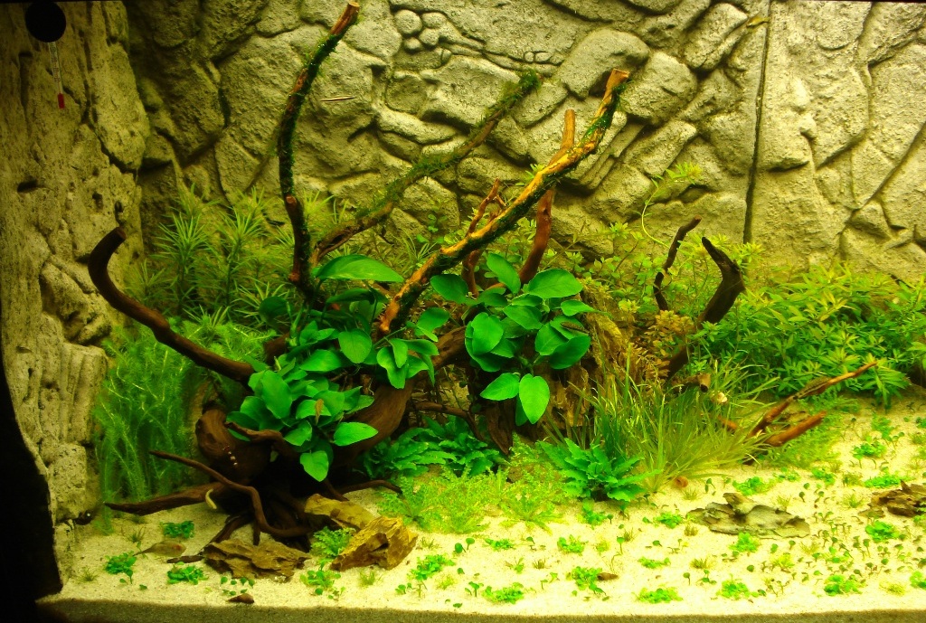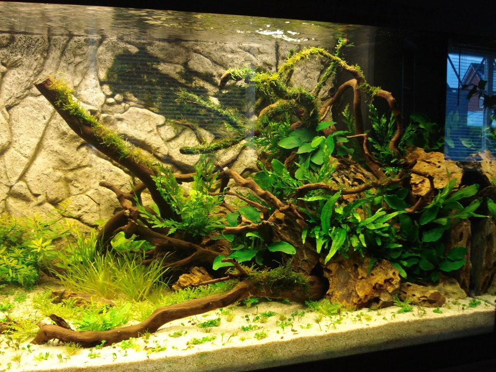 Auf die linken Wurzel würde ich noch etwas Farn setzen,das verbindet die beiden Seiten dann von der Pflanzenzusammenstellung etwas besser.
