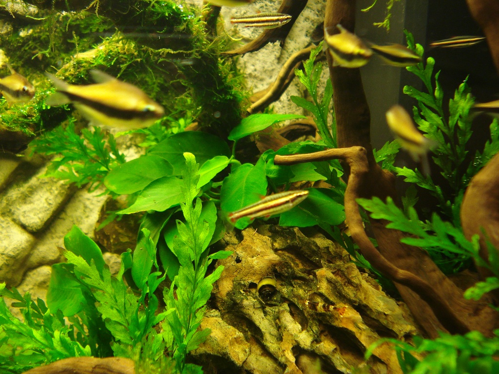 Zu deinem Besatz nur eine Anmerkung, überleg dir das mit den Nannostomus gut, ich hab sie noch in meinem 60iger Becken, das aber demnächst aufgelöst wird. Die wollen doch die eine oder andere Deckung über an der Wasseroberfläche flutenden Pflanzen oder Schwimmpflanzen. Mein 60iger steht inzwischen im Keller und wird nur noch von einer 15 Watt Röhre beleuchtet und ist schon schön verkrautet, da zeigen die "Bleistifte" erst mal so richtig schöne Farben, sind halt eher scheue Fische nach meiner Erfahrung.