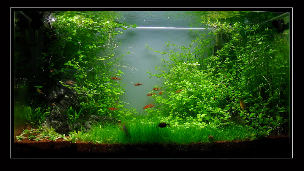 die Fische sind nun alle drin, Bepflanzung wurde auch noch aufgestockt. Die Pflanzen geben auch langsam Gas, besonders die Staurogyne, aber die beschneide ich noch nicht, lieber noch warten.
