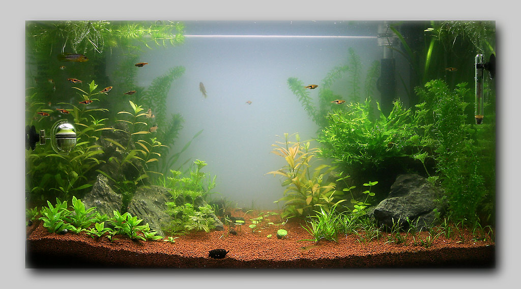 Allerdings habe ich jetzt eine bakterielle Trübung, sieht aus wie nach einer Überdosierung von Easy Live FFM. Aber die stört mich jetzt weniger, komischerweise wachsen die Pflanzen seit dieser Trübung besser und assimilieren auch sichtbar. Ähnliches hab ich aber auch schon in anderen Foren gelesen, das durch so eine Trübung die Pflanzen besser wachsen??