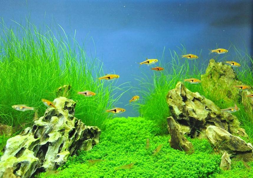 Hier mal wieder ein kleines update! Es gibt eigentlich nichts neues, mein Iwagumi gibt es immernoch, mit den grausigen grünen Algen habe ich keinerlei Probleme mehr! Selbst ich kann es kaum glauben, dass ich diese Katastrophe wieder in den Griff bekommen habe. Wer´s nicht mehr so genau weiß, ich hatte nach einem radikalen Rückschnitt meines HC ( Hemianthus Callitrichoides - Kuba-Perlkraut ) Cuba wahnsinnige Probleme mit Grünalgen bekommen. Das ganze HC ( Hemianthus Callitrichoides - Kuba-Perlkraut ) Cuba war voll davon, komplett überwachsen und die Scheiben waren auch alle paar Tage voll zugewachsen. Eigentlich hatte ich mich schon damit abgefunden, mein Iwagumi aufzugeben. Gut dass ich nicht aufgegeben habe, denn wie gesagt, es ist alles wieder in Ordnung! Also falls jemand von euch das gleiche erlebt kann ich nur raten: NICHT AUFGEBEN! Auch wenn es aussichtslos erscheint, kann man es wieder in den Griff bekommen. Eigentlich schade, dass ich in der schlimmen Algenzeit kein Bild gemacht habe, dass hätte wohl keiner für möglich gehalten, dass ich das wieder hinbekomme. Hier dann mal zwei aktuelle Bilder, leider bin ich immernoch kein Fotokünstler und schaffe es einfach nicht, scharfe Bilder zu machen!