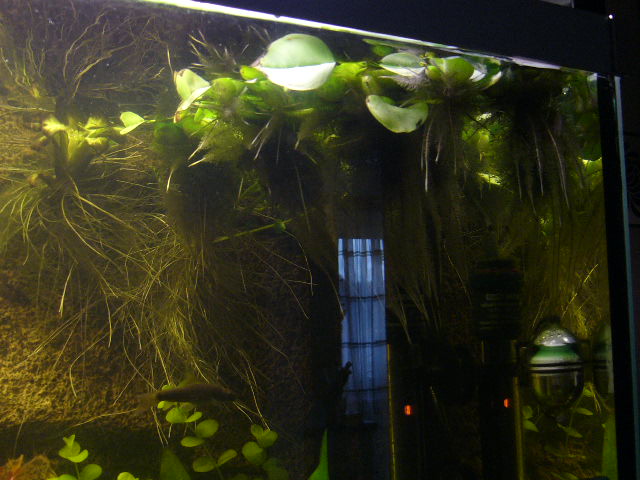 Da die wurzeln recht braunes wasser machen will ich das erst mal lassen,auserdem kammen die algen 2 tage nachdem ich 3 tage am licht herumgespielt habe(weiss nicht obs daran lag will es aber auch nicht Testen) jetzt wos anscheinend ein wenig besser geworden ist....