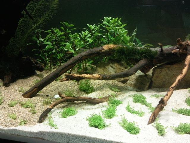 Das war mein letztes Layout im 1000Literbecken, was momentan sehr zugewuchert ist, da ich die Pflanzen schon fürs neue Becken züchte, man sieht keinen einzigen Kieselstein mehr :
