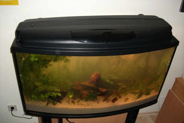 Insgesamt habe ich einen ganzen Tag damit verbracht, das alte Becken zu leeren und das neue komplett einzurichten. Das Wasser vom ehemaligen 84 l Becken kam natürlich komplett ins neue.