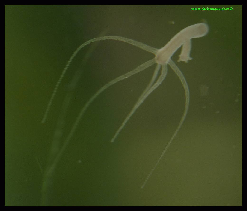 ich hab heute wieder 4 1/2 Hydras abgesaugt und vorher schnell noch fotografiert. Da entdeckte ich den Nachwuchs.