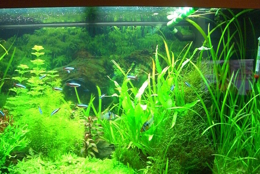 Mein Aquarium ist jetzt 4 Monate alt, und hat einen Inhalt von 125 Litern und hat schon einiges hinter sich, den Anfang machten die Fadenalgen also Grünalgen,der Grund war die Einfahrphase und einer super Strömung von meinem Innenfilter von Juwel.Ich war da schon am ausrasten weil ich die Algen nicht in den Griff bekam, bis ich mir Hilfe von einem Nachbarn holte der deutlich mehr Erfahrung hatte,Lösung für das Problem, man nehme ein paar Teile von Eheim und ein Auslaufrohr mit ein paar Löchern verschliese bis auf 2 Stk. alle und man hat eine 1 a Filterleistung und eine bedeutend geringere Strömung im Becken.