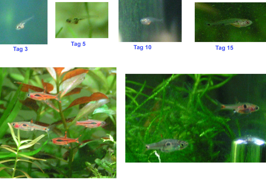 [1x Moskitoboraras Weibchen, 2x Moskitoboraras Männchen, 1x Boraras Merah, 1x Boraras Petch Noi (Pärchen)