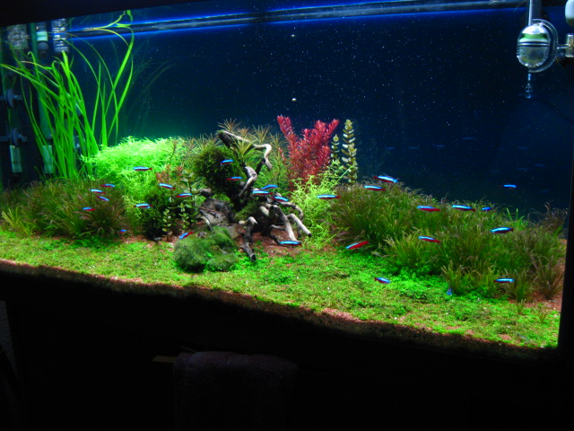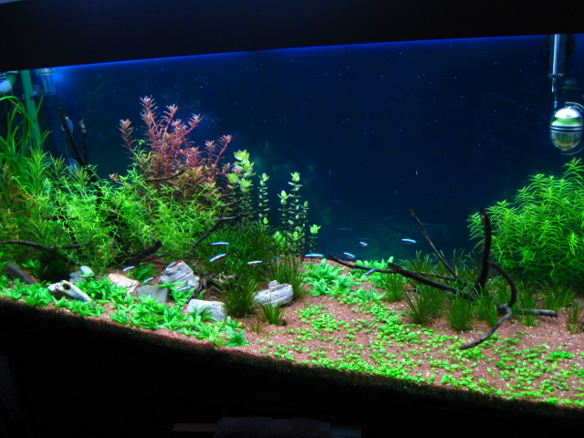 die HC ( Hemianthus Callitrichoides - Kuba-Perlkraut ) wird jetzt auch lansam dichter und grüner aber nur sehr lansam :ao2: