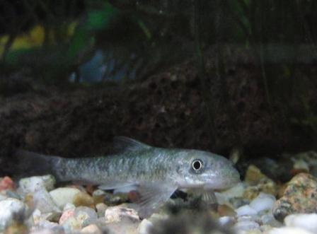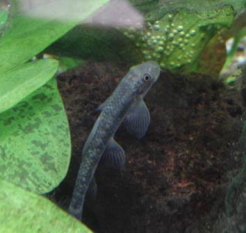Er hat ein Becken, in dem er die Amanos, Otos und Siamesischen Rüsselbarben hat...