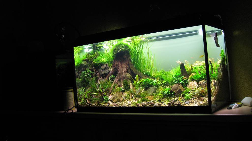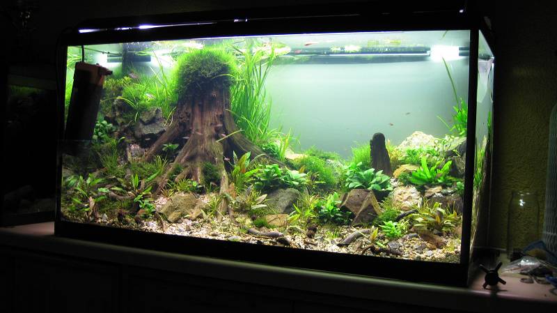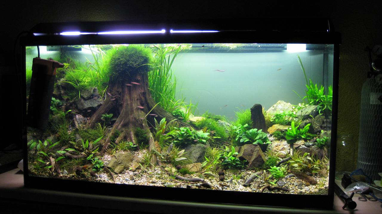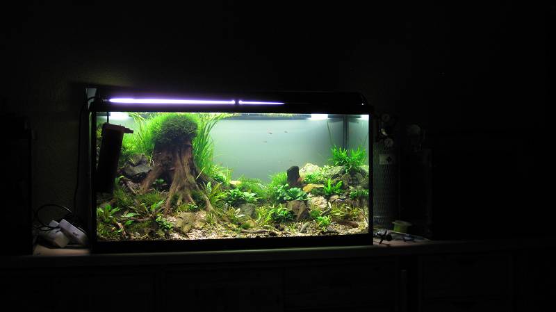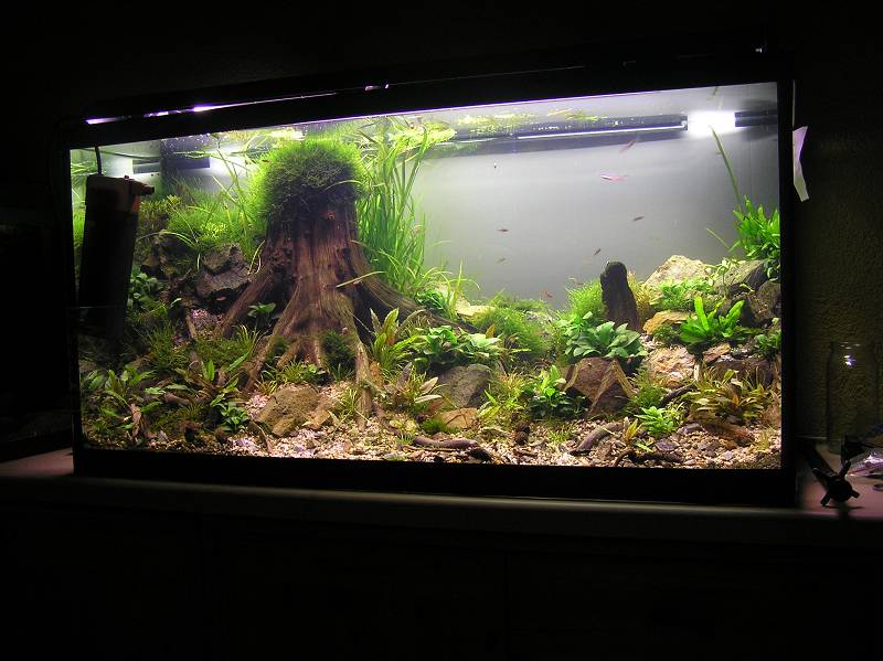 @ Moni:I ich hab hinten einfach weiße Große Pappestücke dahintergeklemmt sieht außenrum ziemlich liederlisch aus ... Aber sehen irgendwie all meine Becken ! Ein bisschen ordnung und tischlerei würde sich da echt lohnen ^^ Hab dahinter noch die Lampe vom 38 Becken liegen aber die mach ich nur manchmal an wenn ich lust habe =)