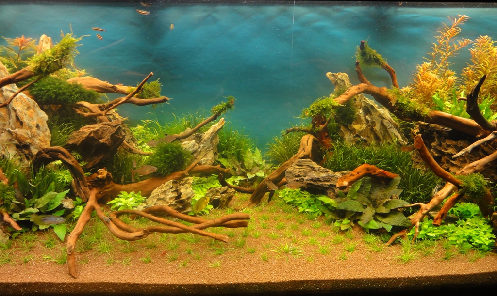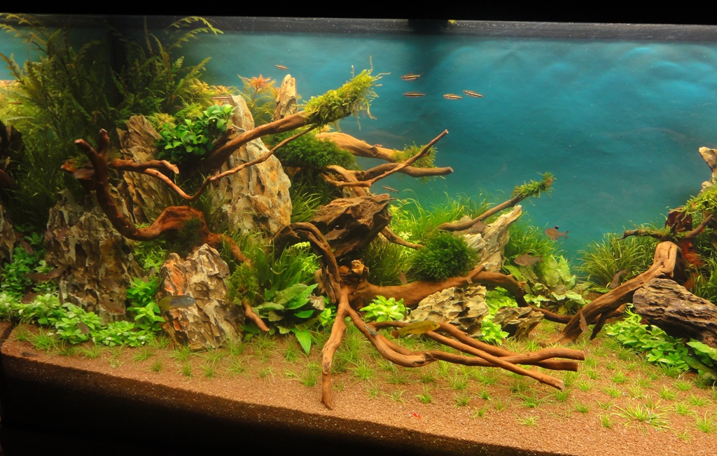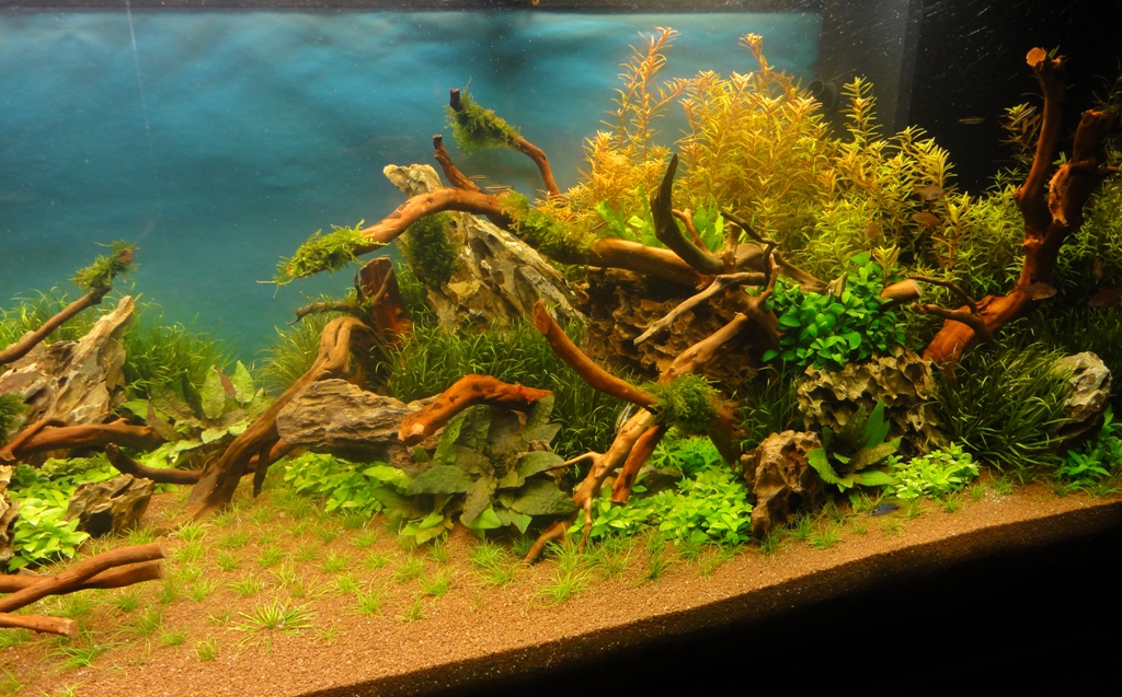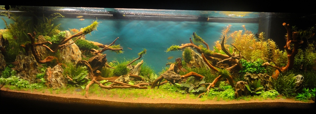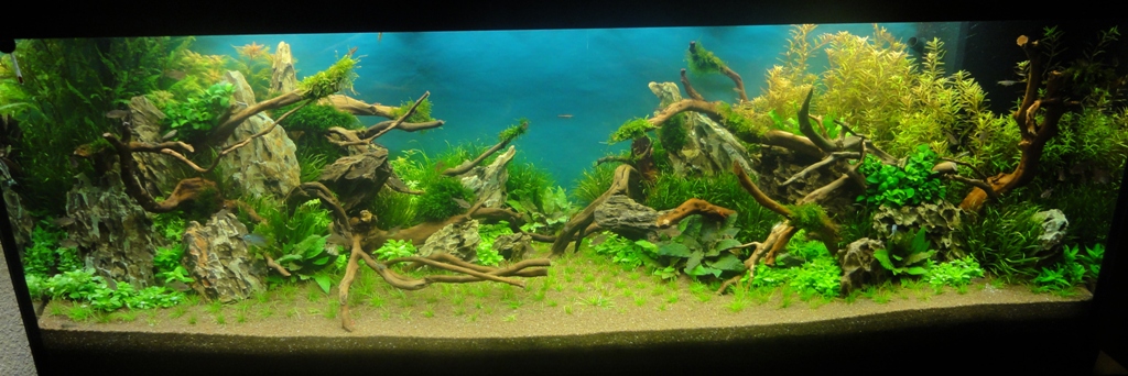 na, jetzt ist ja doch ne ganze Menge passiert :wink2: Ich möchte euch allen für die positiven Feedbacks, wie auch für die konstruktive Kritik danken :wink2: Also dieses Layout sollte halt mal was anderes werden, deshalb habe ich auch absichtlich sehr viele Steine und Wurzeln verwendet. Das Problem bei meinen letzten Becken war immer, das das Hardscape sehr schnell von der Pflanzenmasse verschluckt wurde. Deshalb bin ich dieses mal den Weg gegangen, das Hardscape um einiges üppiger ausfallen zu lassen. Deshalb soll jetzt erst mal alles wachsen und dann schauen wir mal weiter. Der Grund, weshalb ich das Becken schon wieder umgestellt habe war, das ich eigentlich das ganze Becken für den Contest in Hannover vorbereitet hatte um alle Pflanzen perfekt vorzuziehen, aber da ich ja nicht in Hannover dabei sein kann, habe ich das neue Layout aufgesetzt. Sonst hätte warscheinlich noch immer das alte gestanden.