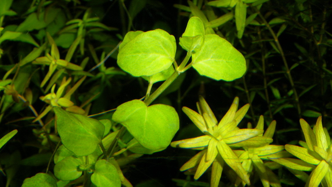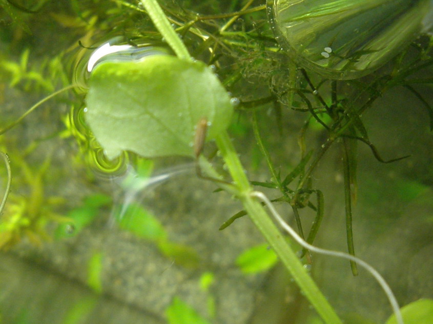 Sie passt zu keiner mir bekannten Wasserpflanzenart, vom Habitus her würde ich sie Richtung Lamiaceae einordnen, aber auch Internetrecherche hat mich bisher nicht weiter gebracht. Die Sprosse könnten auch emers gezogen worden sein, zumal beim Kauf an einer Blattachsel noch ein Blütenrest hing, sie wächst hier aber submers, bei 24°C, eingepflanzt wie flutend, assimiliert und sieht nett aus :)
