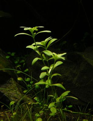 habe mir von meiner letzten Tümpeltour eine Pflanze mitgebracht! Sie wuchs am Ufer und im flachen Wasser, dort auch mit sichtbaren Wasserwurzeln! Farbe ist zartgrün, die Blätter stehen paarweise, aus den Blattachsen kommen Seitentriebe heraus.Blattgröße 1 cmx0.5 cm. Wuchs ist recht ordentlich, sie hat in 3 Tagen 3cm zugelegt! Eine eine Idee?!