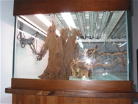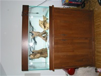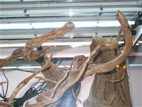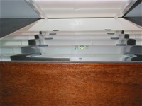 Das dritte Foto zeigt den Blick bei angehobenem Deckel (3teilig) von Oben auf die Reflektoren/ Leuchten. Dazwischen ist etwa 5-6cm Luft, durch die ich Futter geben oder etwas hantieren kann (muß ich eh mit Pinzette machen, wenn's mal nötig wird).