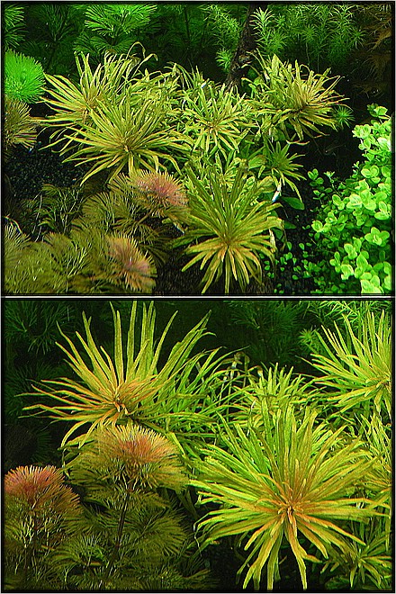 die Ludwigia inclinata Cuba ist seit Jahren einer meiner Lieblinge,und ich konnte die unter "nur" 0,5 Watt t8 zu richtig gutem Wuchs bewegen.