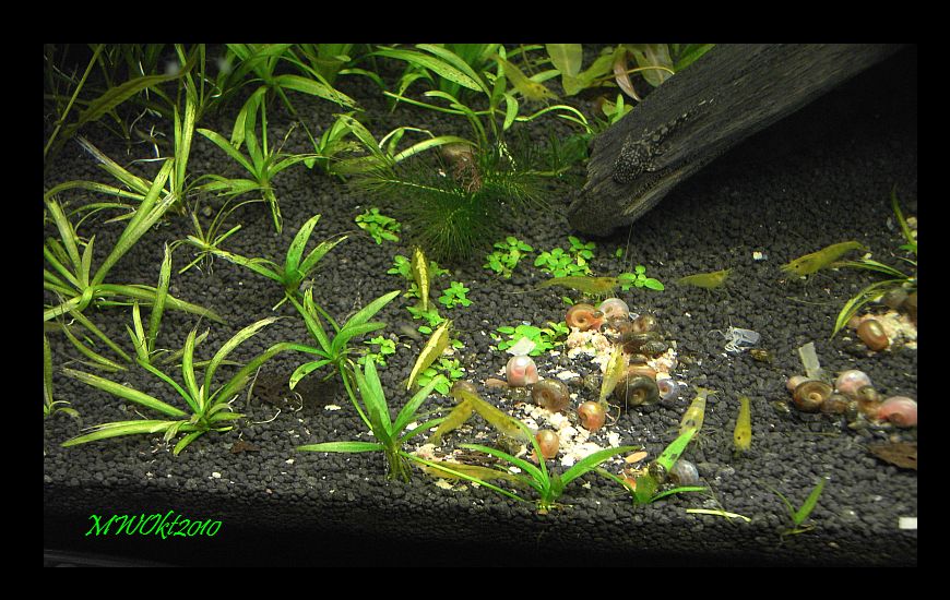 Habe sie nun in ein 1L Nano getan wo paar Blasenschnecken drin sind.