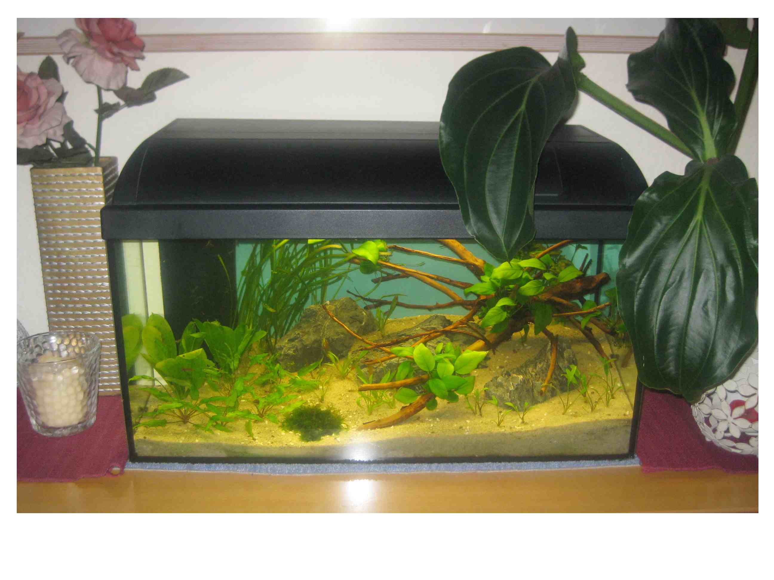 Wollte jetzt auch mal mein 1. Becken vorstellen. Es handelt sich um ein Vollglasbecken 60x30x30 cm, also 54l netto.