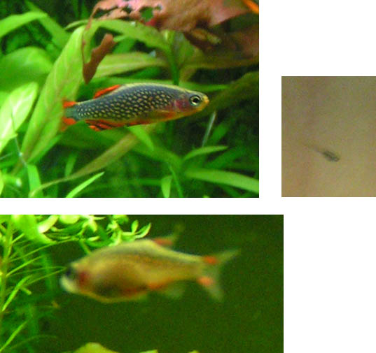 Weiß auch nicht, hab den Typ im Zooladen extra xmal gefragt und jedesmal habe ich den Eindruck die erzählen einen in den Läden immer nur Mist, weil der meinte das wär Null Thema und da käm höchstens 1 Fischlein pro Jahr hoch, aber das sieht ganz anders hier aus. Das sind mind. en dutzend Fischlarven und die sind sogar schon verhältnismäßig groß, jedenfalls schnappen selbst die Petch Noi nicht mehr danach. :rolleyes: