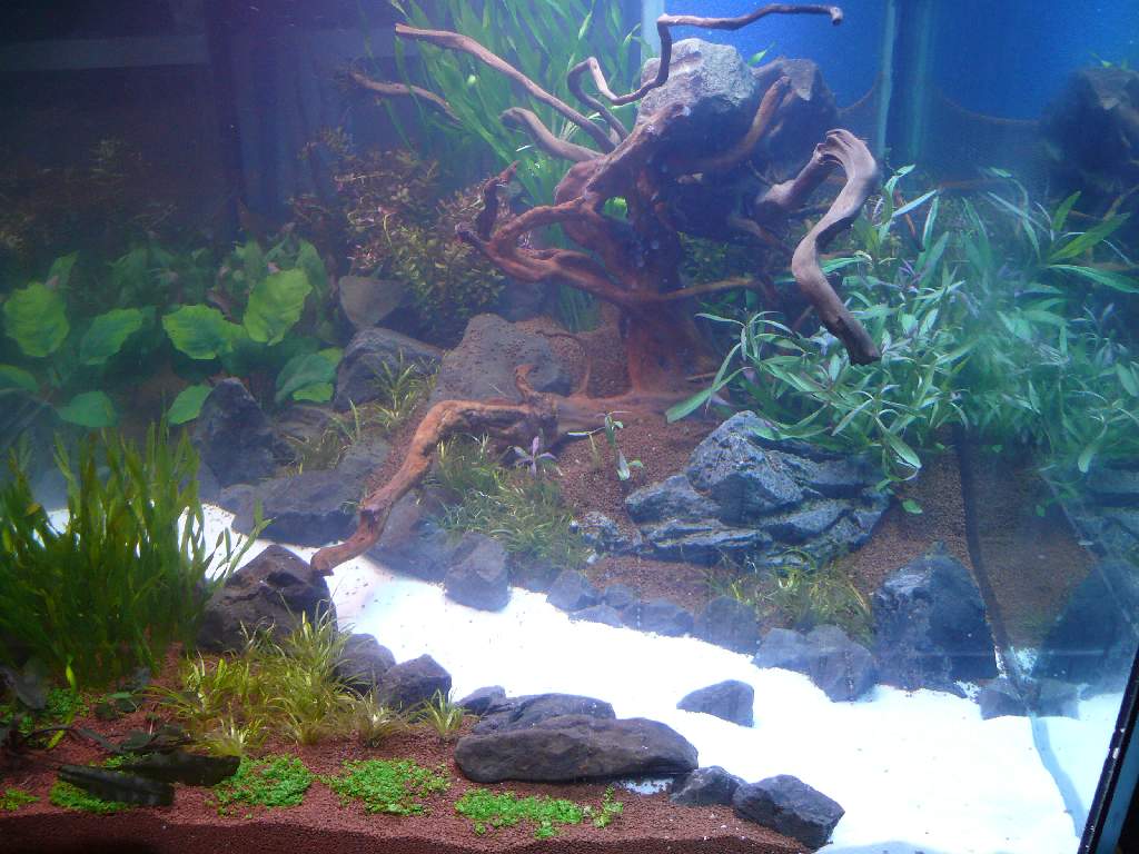 Die Anubias ( Speerblatt ) habe ich noch nie aufgebunden und die wachsen bei mir schon immer wie wild (auch schonmal im Sand). Ich habe Sie jetzt erstmal links hinter das Sandbett gesetzt (ist übrigens schon eine meiner kleineren gewesen)