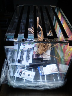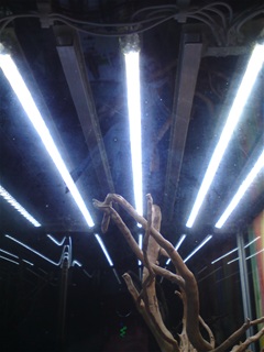 Mal als Appetizer ein paar Bilder aus dem Handy von der Latüchte. Die Streifen bleiben recht kühl, sind hell wie'd S** und machen richtig schickes Licht. Das Kabel am NT hat wohl nur 0,5mm² Querschnitt pro Ader (ich Dödel hab 0,75mm² für meinen Verhau genommen). Mit dem kleineren Querschnitt in Rot/Schwarz würde es richtig schick aussehen. Na ja, es erfüllt seinen Zweck, für ein erstes Experiment bin ich hinsichtlich der Trockenübung zufrieden. Warten, wie es wirkt, wenn das Scape steht und erst, wenn das Becken "Land unter" hat. Bin gespannt.