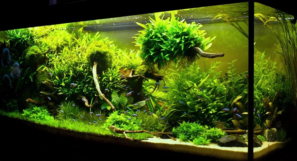 hat sich prächtig entwickelt, Dein Becken und die blauen Diskus machen sich als Kontrast sehr gut darin.