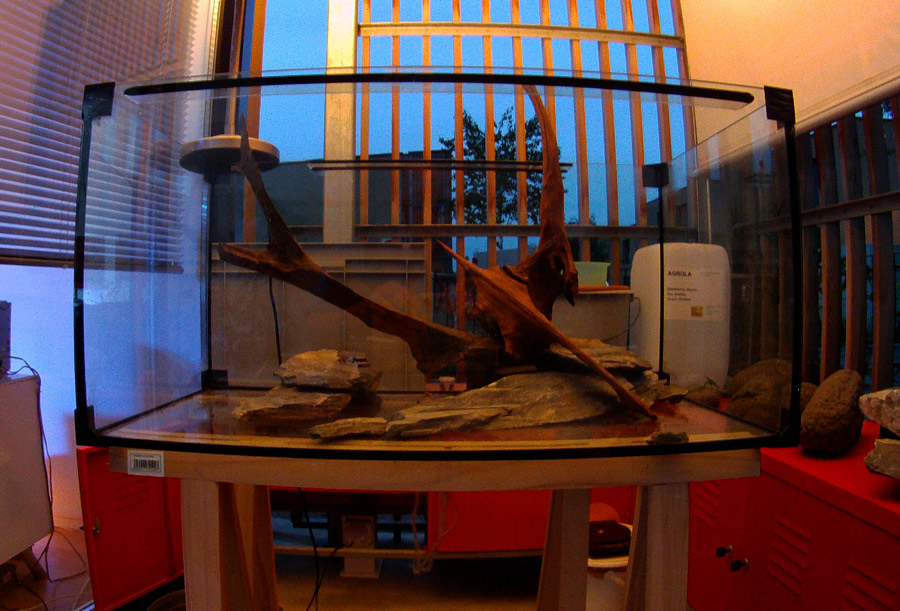 Übrigens das frei im Wohnraum stehende Meerwasserbecken ist ein Hingucker.