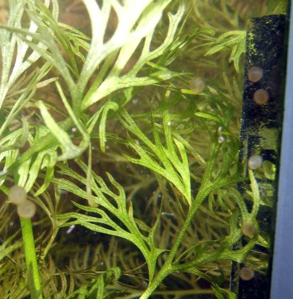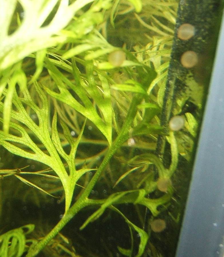 Diese runden "Kugeln" habe ich gestern Abend entdeckt. Sie befinden sich einige Zentimeter unter der Wasseroberfläche, direkt hinter der Rückseite des an der Außenseite angeklebten Thermometers.