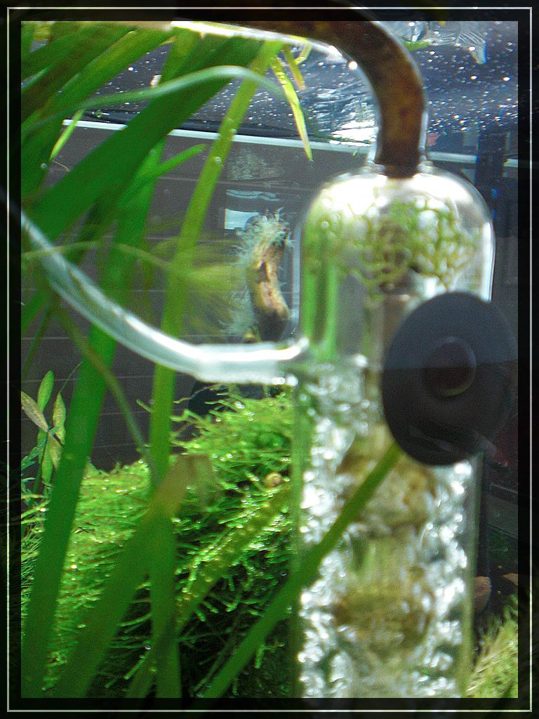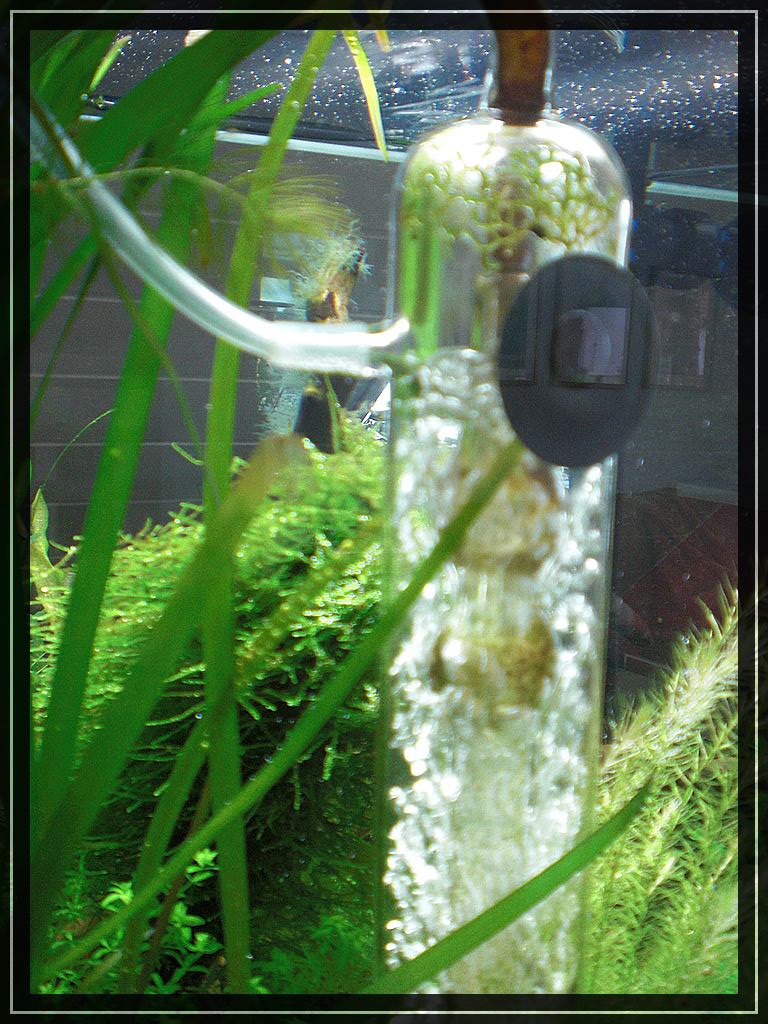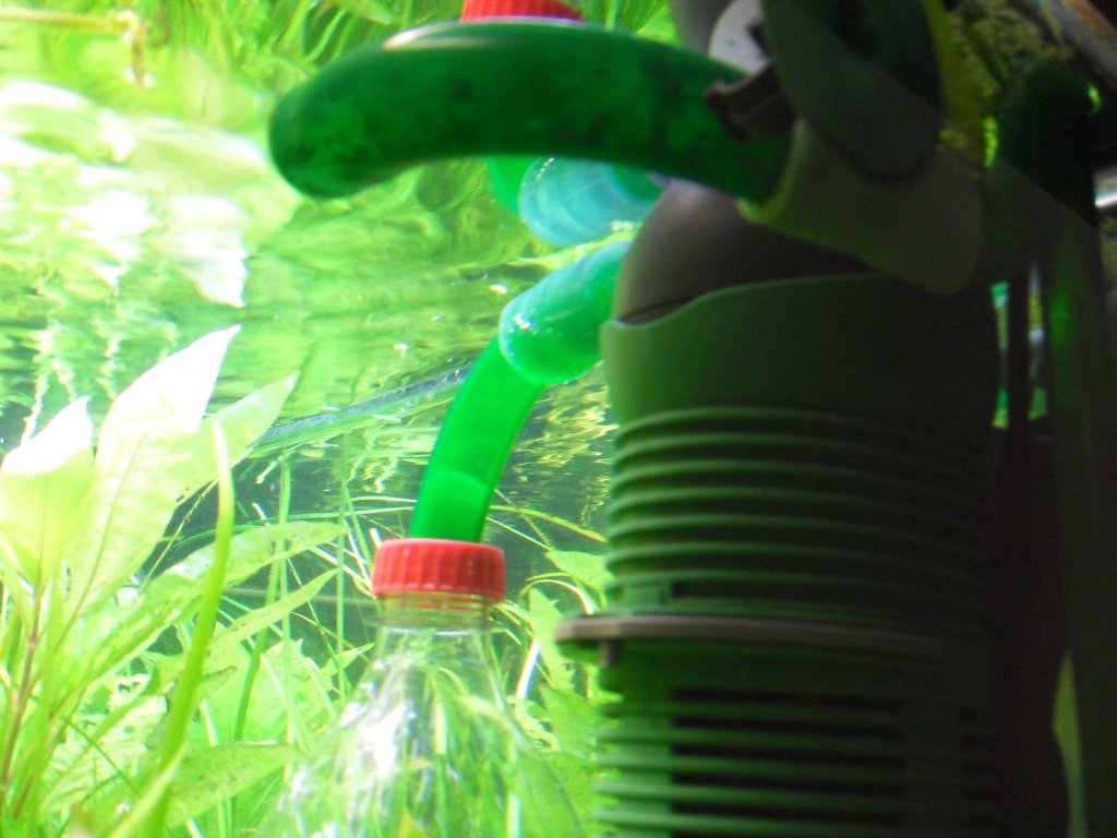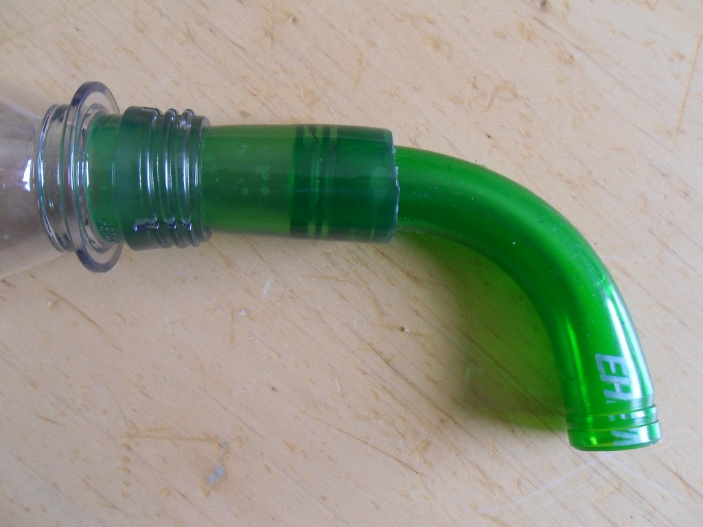 Auch habe ich diesmal die Schraubkappe abgelassen, da ein 22" Schlauch genau in den Flaschenhals passt !