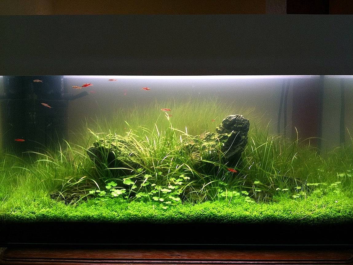 Es handelt sich um ein 54 Liter Becken, welches ich mit 2x24 Watt T5 beleuchte.