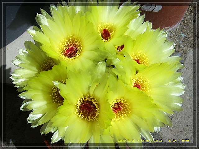 fast richtig. Von l nach re Freilandopuntie, Lobivia und Noto.