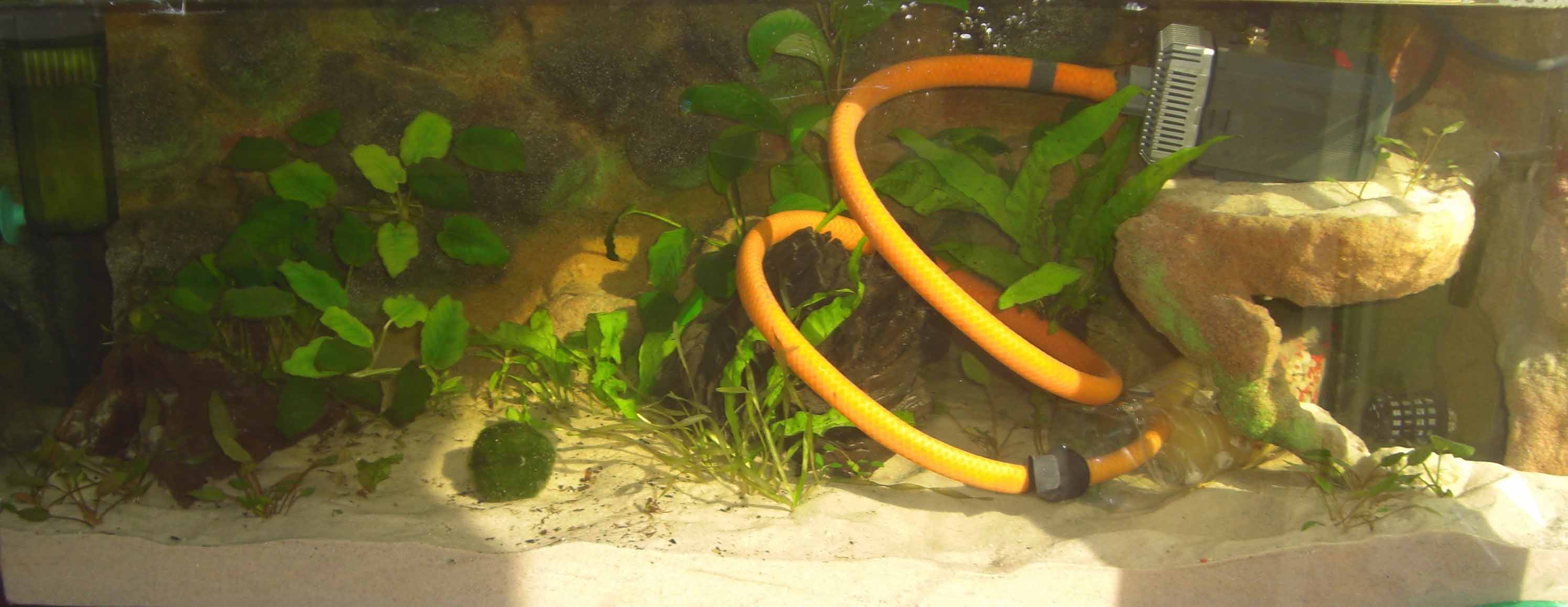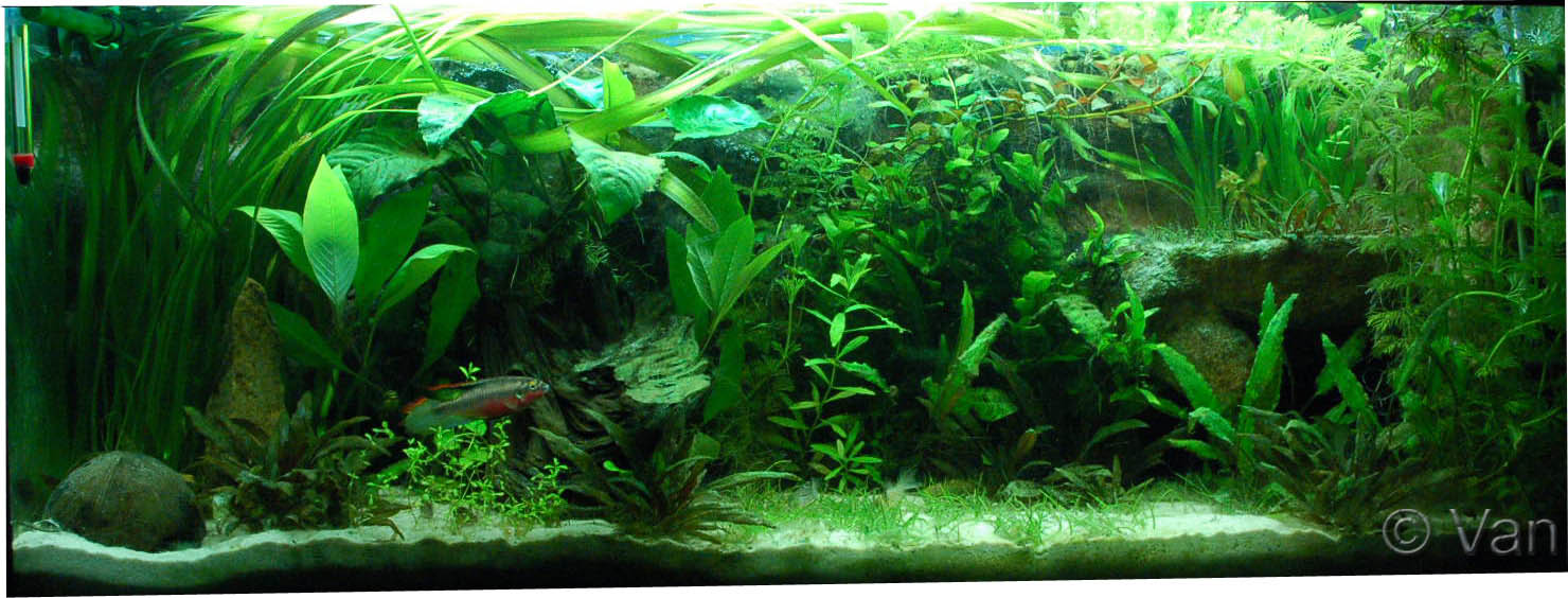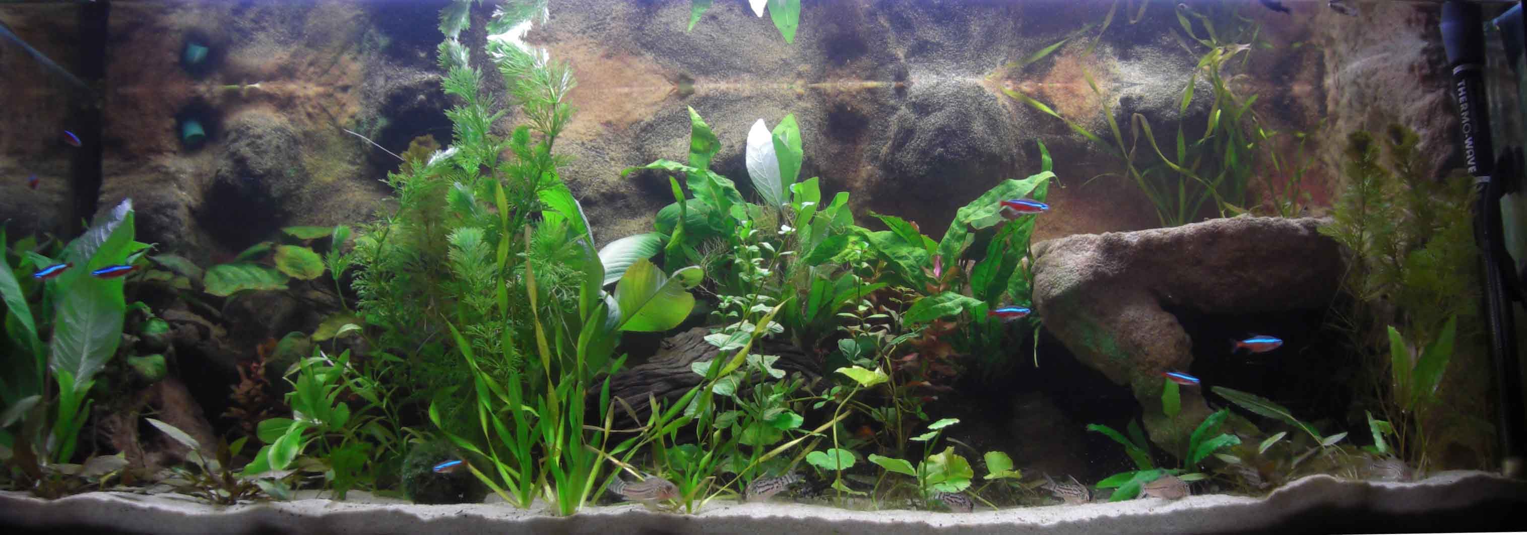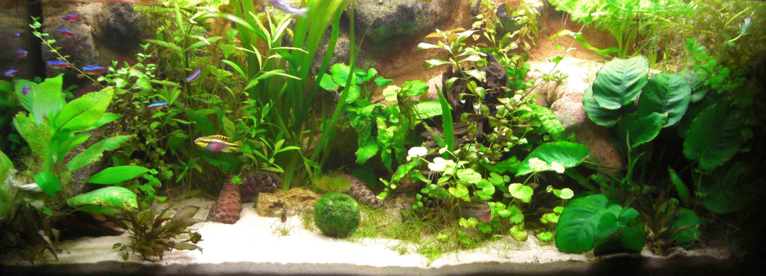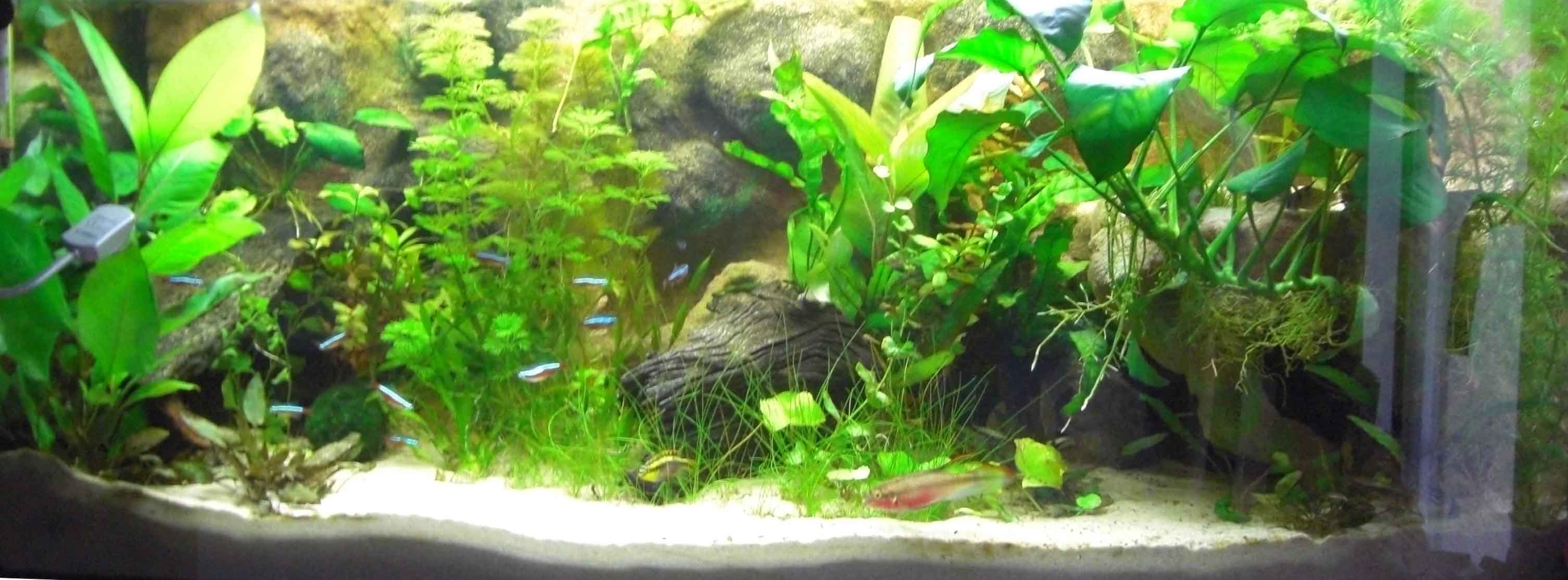 Zuerst das Zuhause eines Neon Salmer Schwarm, eines Trupps Panzerwelsen und einem Pärchen Purpurprach Buntbarschens, lief das Becken ca. 1 1/2 Jahre.